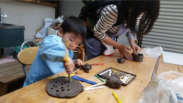 冷んやりした土の感触を味わいながら好きなものをかたちづくる・・・